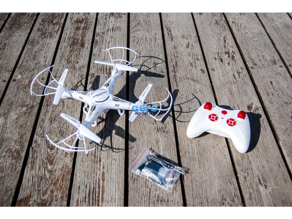 Az X5 modell alapján fejlesztették ki és kiegészítették maximálisan stabilizált repüléssel mind a kezdők, mind a haladók számára. A modell fényképezőgéppel rendelkezik, amely lehetővé teszi a HD minőségű fényképek és videók készítését és felvételét. Az alvázzal és a rotorvédelemmel együtt küldjük. Csatlakoztatott akkumulátor 7 00 mAh LiPo hosszú repülési időhöz. A modell két fénysugárral rendelkezik, amelyek segítenek a pilóta tájékozódásában, és a villogásuk jelzi a akkumulátor merülését. 6 tengelyes stabilizációs repülési rendszerrel rendelkezik. A modell iránytű funkcióval rendelkezik a könnyű működtetéshez, valamint a modell visszahívó gombjával. Alapértelmezés szerint előre programozott a 360 fokos kilátás, ami lehengerli a környezetét.