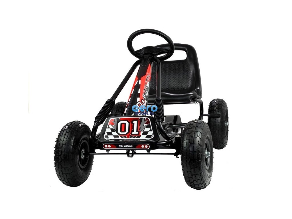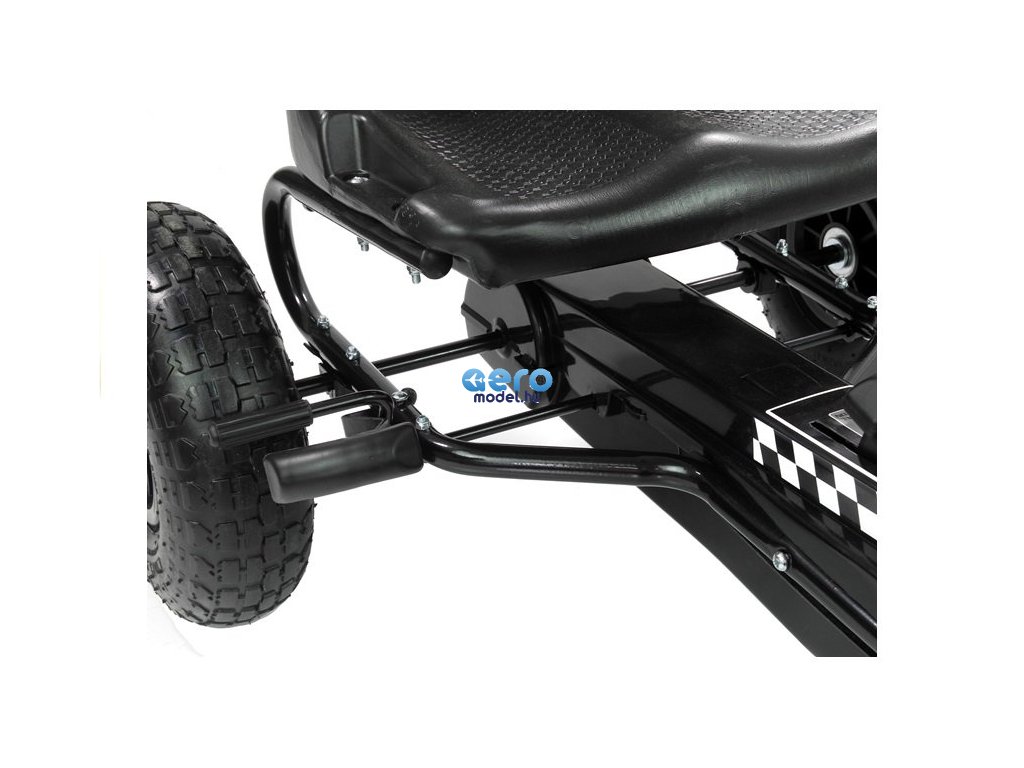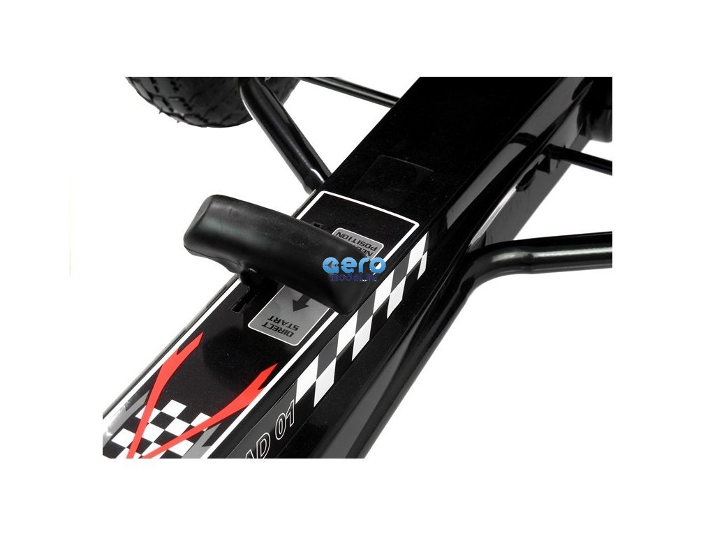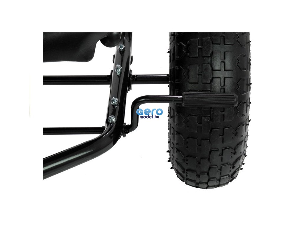 Könnyűfém szerkezetből készült, műanyag kiegészítőkkel. A nagy habkerekek minden szabálytalanság után kényelmes utazást garantálnak. A professzionálisan kialakított sportülésen 3 lehetőség van a kormánytól való távolság beállítására. A sportkormány biztonságos vezetést tesz lehetővé.