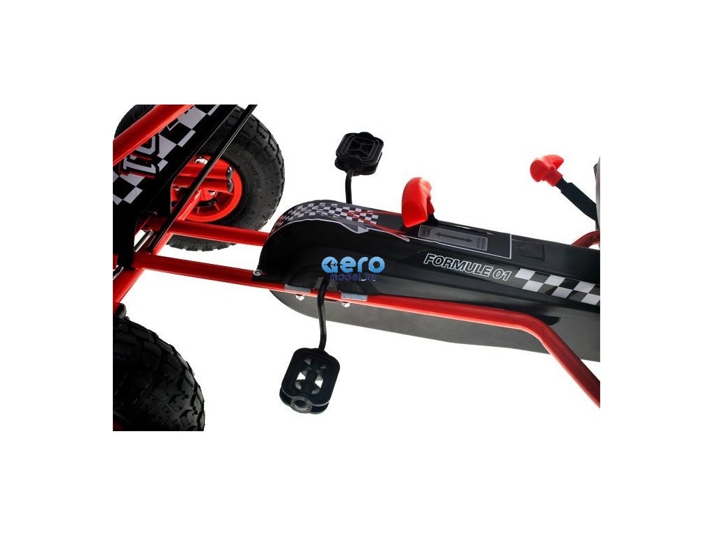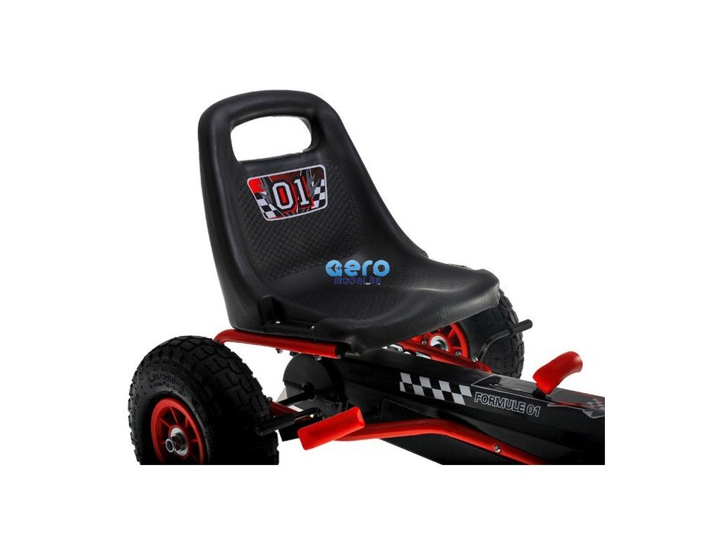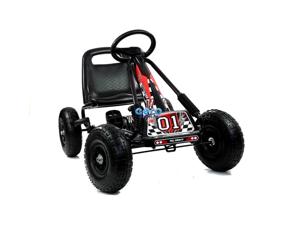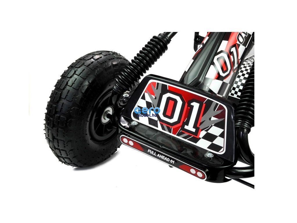Könnyűfém szerkezetből készült, műanyag kiegészítőkkel. A nagy habkerekek minden szabálytalanság után kényelmes utazást garantálnak. A professzionálisan kialakított sportülésen 3 lehetőség van a kormánytól való távolság beállítására. A sportkormány biztonságos vezetést tesz lehetővé.