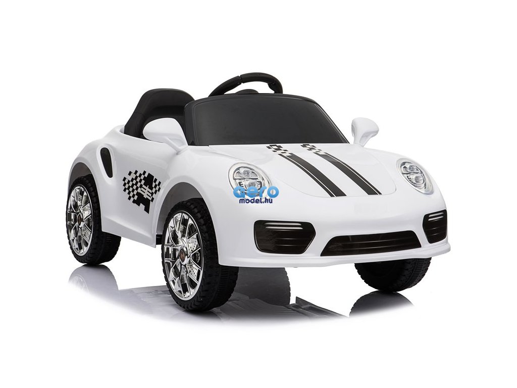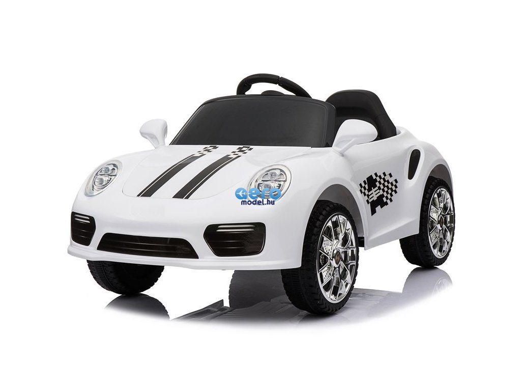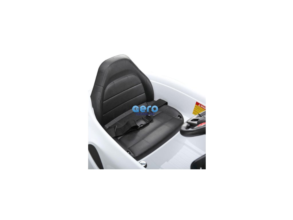 Gyermek elektromos autó fehér színben: távirányítóval, LED, 3 sebesség, fék, biztonsági övek