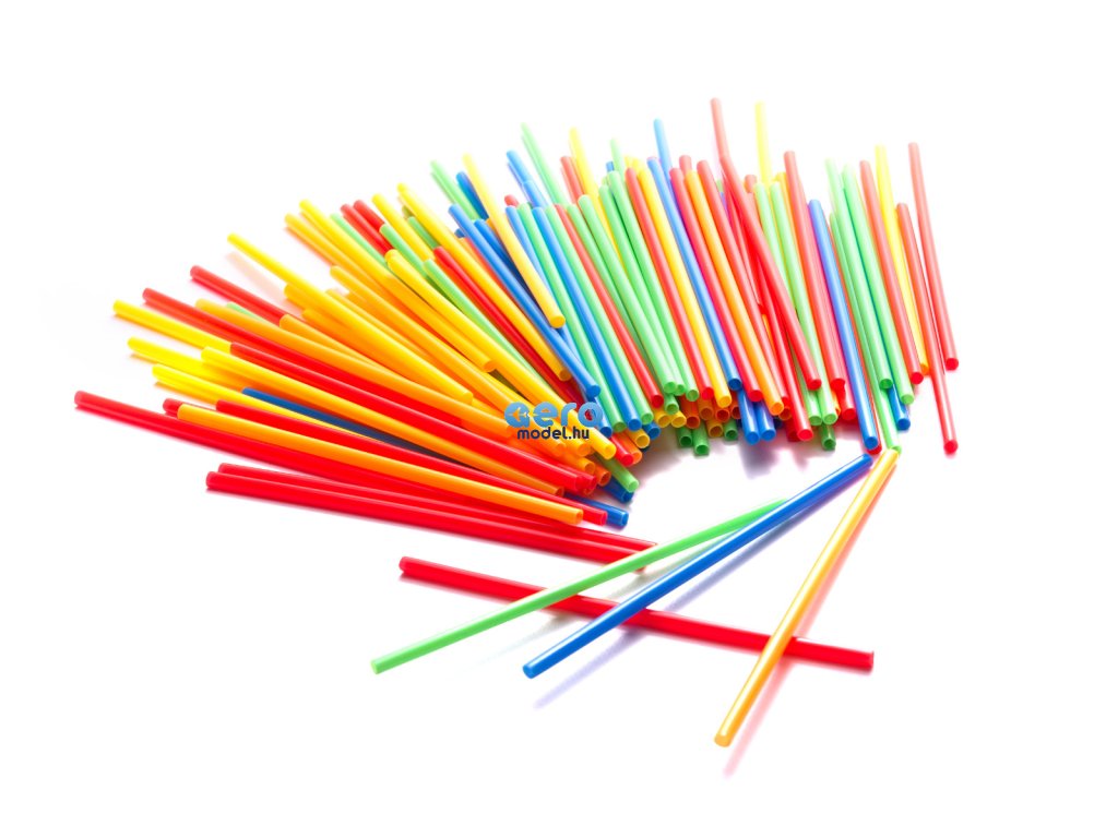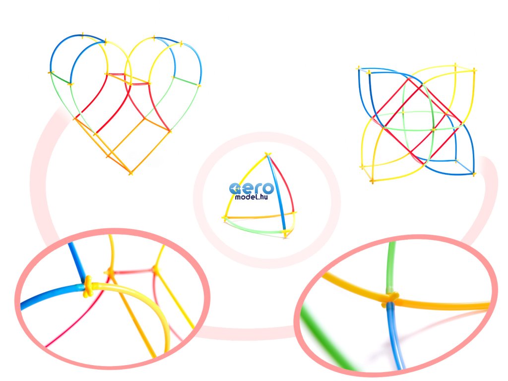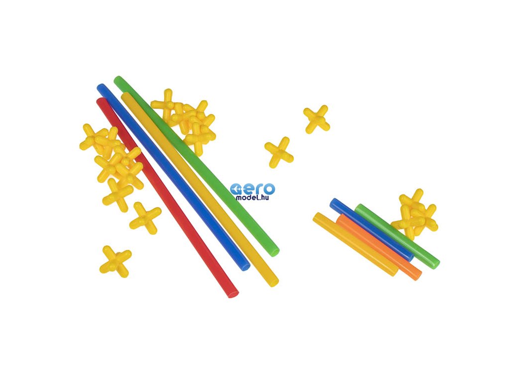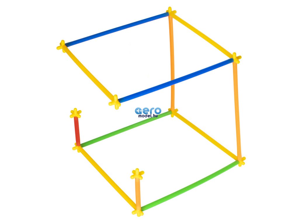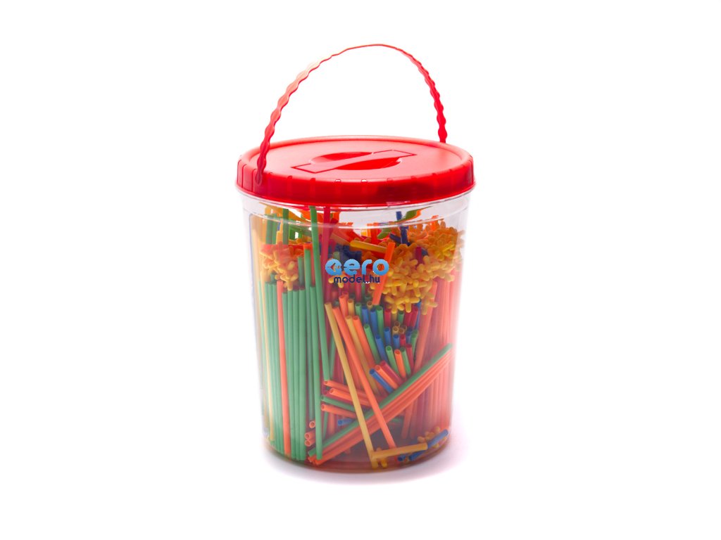 A csomag műanyag szívószálakat és műanyag kereszteket tartalmaz. A szívószálak keresztekkel történő összekapcsolásával különböző struktúrákat hozhat létre.