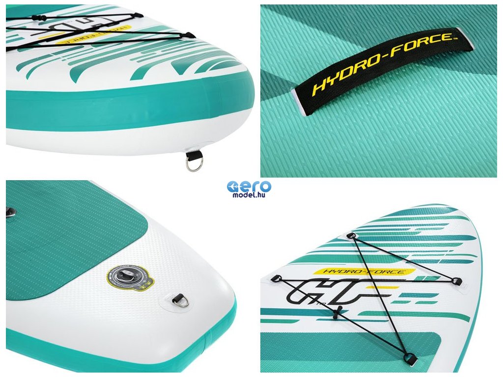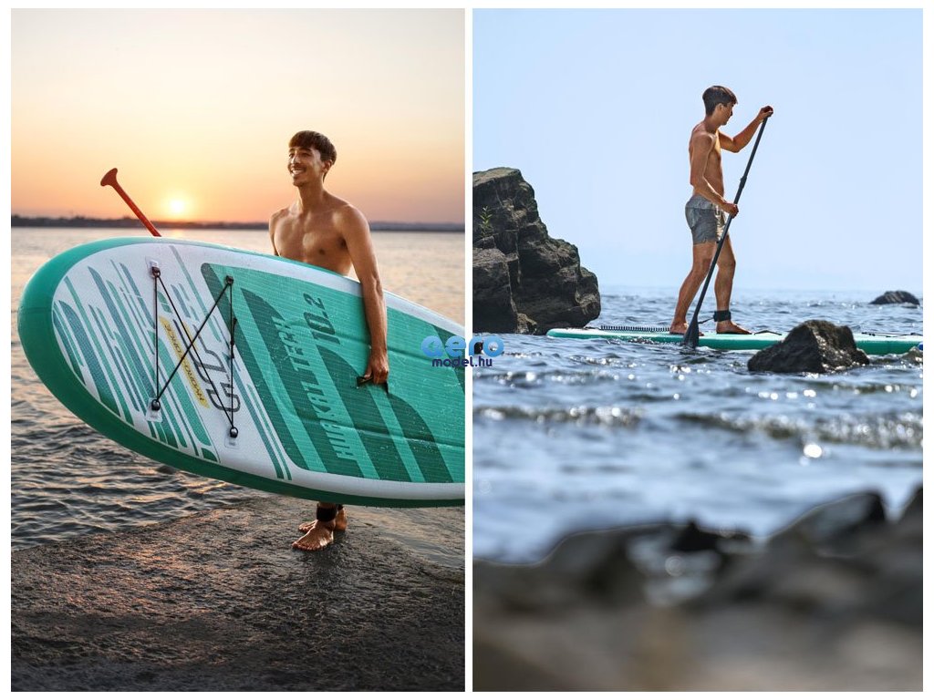 Tritech anyagból készült - speciális háromrétegű laminátum poliészter hálóból és PVC-ből készült maggal, amely merevséget és szilárdságot ad, valamint a Drop Stitch - egy felfújható szerkezet, amely garantálja a vízen való stabilitást. A felfújható deszka az üdülési poggyász nélkülözhetetlen eleme minden hosszú vízitúrák szerelmesének. A felfújható deszka tökéletes lesz szörfözéshez, de jógához is. Az úszás befejezése után a deszka könnyen leereszthető és a készlethez mellékelt speciális hátizsákban tárolható.