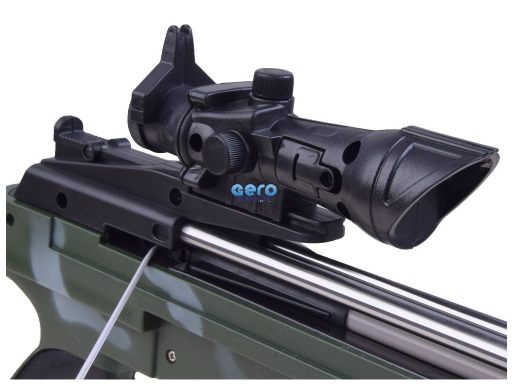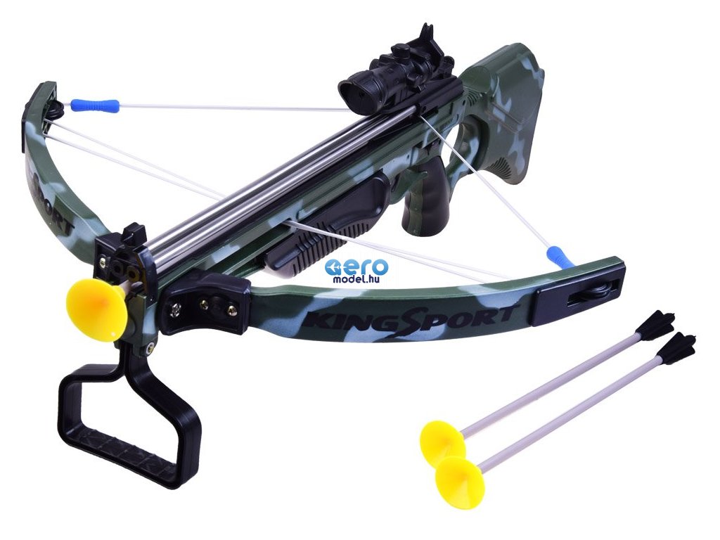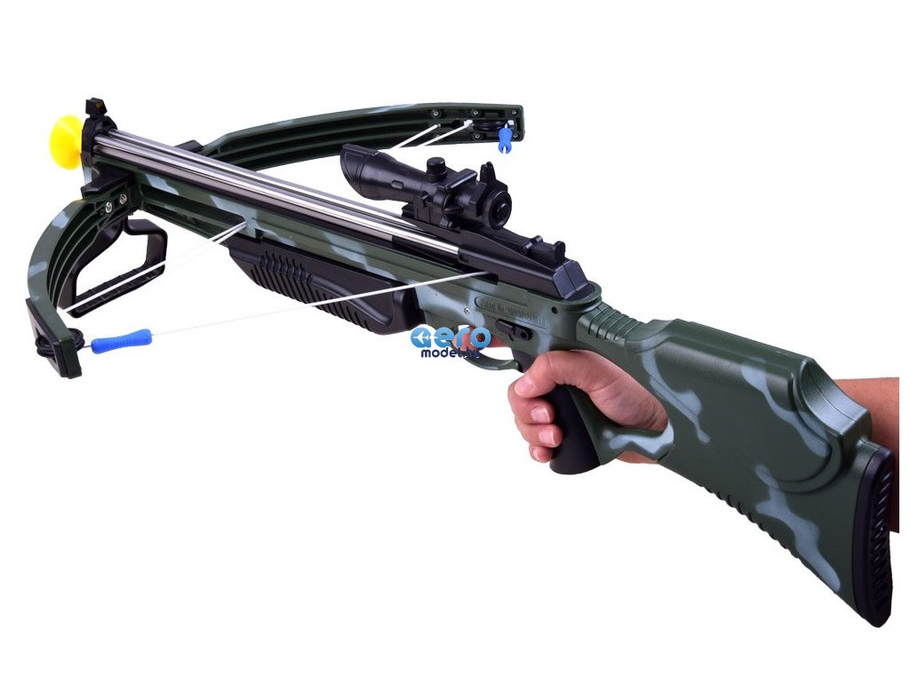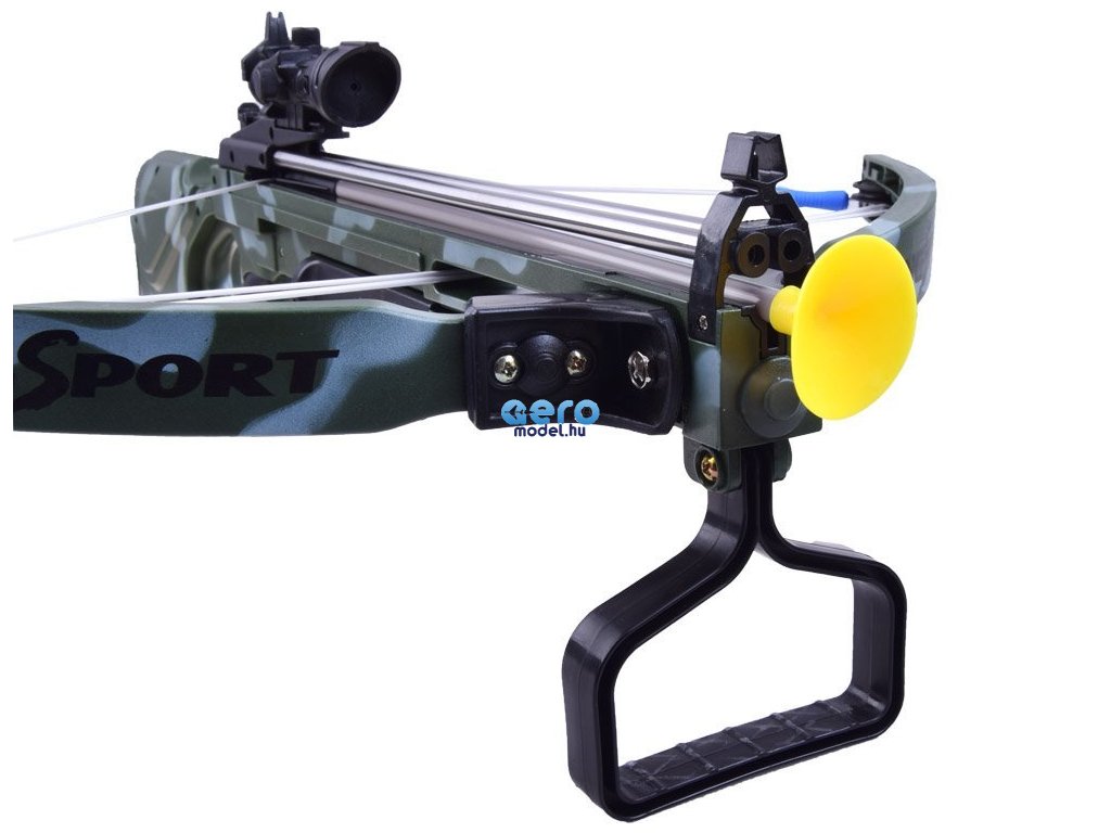A számszeríj lézeres irányzékkal rendelkezik, amely megkönnyíti a célba találást. A játék előnye a kényelmes lábtámasz is, amely lehetővé teszi a rugalmas szalag hatékony megfeszítését. Az egész nagyon hatékonyan, kiváló minőségű anyagokból készült. A számszeríjnak is van biztonsága, csak mozgassa a kart a lombik oldaláról OFF állásba. A biztonságos nyilak tapadókoronggal vannak befejezve.