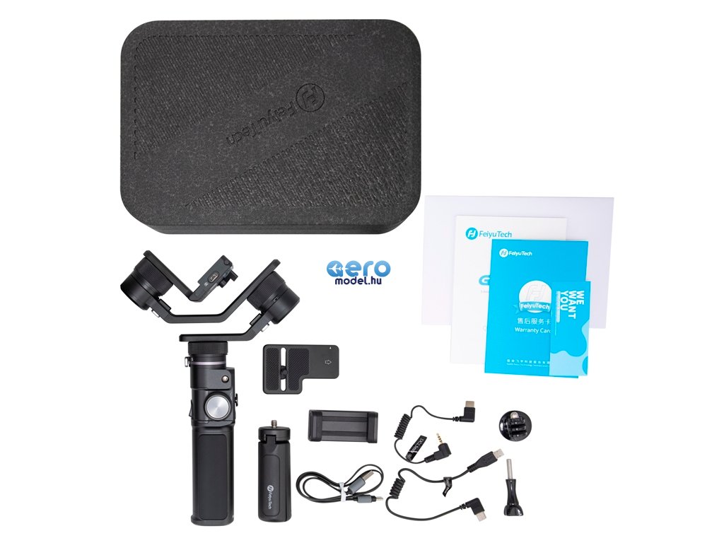 Csomag tartalma: stabilizátor G6 Max USB-C kábel lógó állvány adapter a GoPro-hoz GoPro rögzítőcsavar kábelkészlet a kamerák csatlakoztatásához védőtok