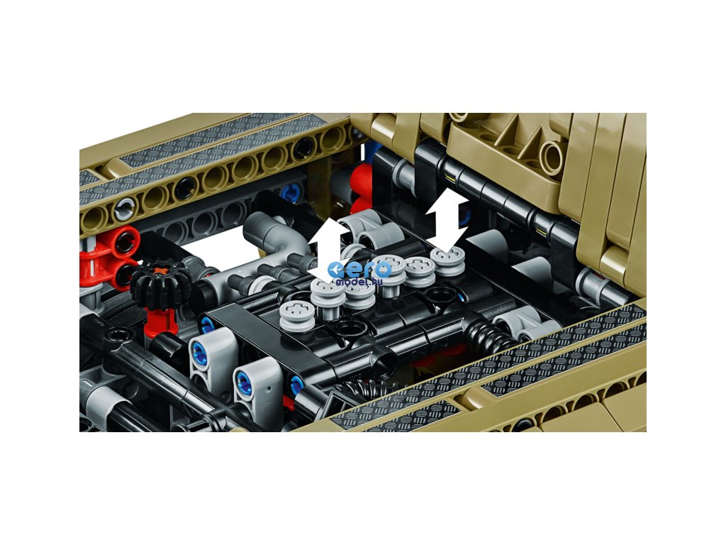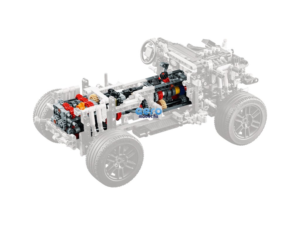 Élvezd ezt az újdonságot, amelyminden idők legkifinomultabb LEGO modellje, 2-karos erőátviteli rendszer jellemzi a nagyobb és kisebb fogaskerék-áttételek bekapcsolására, emellett sebességváltóval is büszkélkedhet. A 4-fokozatú szekvenciális sebességváltóhoz csak hajtsd fel a hátsó üléseket. A motorháztető alatt egy hathengeres motor vár mozgó dugattyúkkal.A jármű összkerék meghajtású, három különböző és egymástól függetlenül működő felfüggesztéssel rendelkezik mindkét tengelyen.