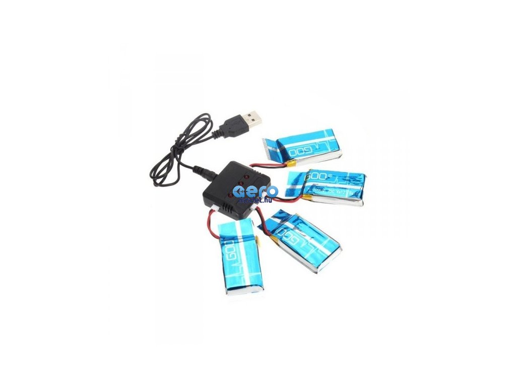 Töltő 4db + 4db Li-Pol akkumulátorhoz 600mAh Syma X5C, SC, SW..