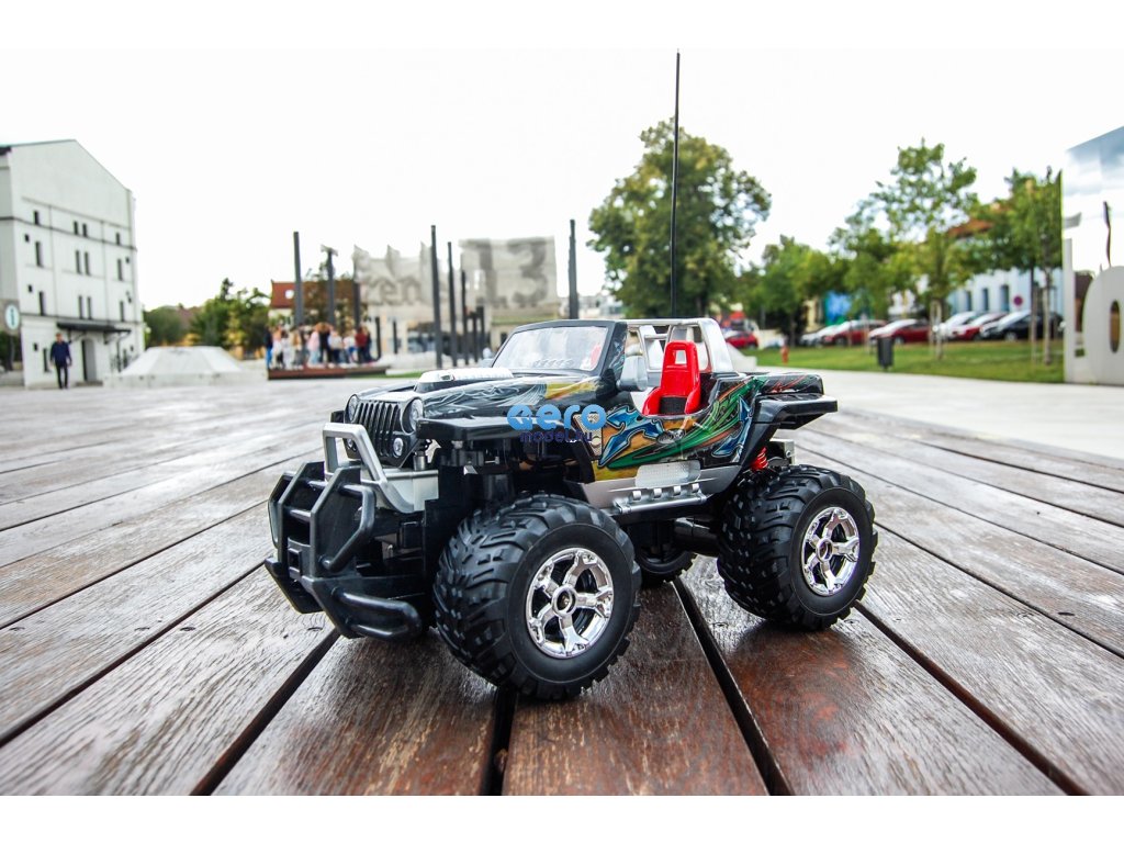 Rádiójellel irányított, hatalmas Hot Strom terep jeep, 1:12-es méretaránnyal, igényes külső és belső megjelenéssel, és modern dizájnnal. Természetesen ez egy teljesértékű és gyors RC modell.