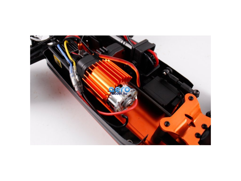A tengelytáv megfelel a népszerű 1-es modellünknek: 10XL-Line, de a nyomtáv kiszélesedett. Amint az XL jelölés is jelzi, ez nem egy klasszikus 1:10 méretarányú modell, hanem egy nagyobb modell, amely az 1:8 méretarányú modellek sok alkatrészét használja, ami garantálja a maximális szilárdságot és tartósságot. Az alváz 2,5 mm-es alumíniumból készült, és a felső megerősítéssel kapcsolatban szinte elnyűhetetlen.