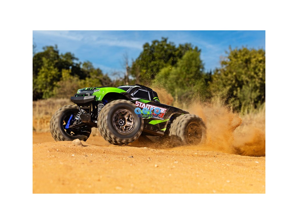 A bevált Stampede dizájnt megtartották, beleértve a moduláris alvázkialakítást, a legmodernebb felfüggesztési geometriát, a súrlódó tengelykapcsolós hajtásláncot, valamint az első és hátsó differenciálműveket. A tengelytáv 295 mm-re nőtt a nagyobb stabilitás érdekében, az akkumulátorrekesz pedig mostantól lapos, 7 cellás NiMH akkumulátorokat is fogad, akárcsak a többi Traxxas modell. A 4WD és AC meghajtással órákon át tartó tökéletes kezelhetőséget és villámgyors gyorsulást tapasztalhatsz meg.