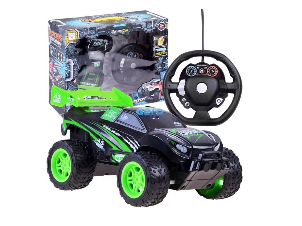 A Cross Country autó gumiabroncsos, magas alvázú jármű. A műanyagból készült játékautó könnyedén eltakarja a gyerekszoba futópályáit.