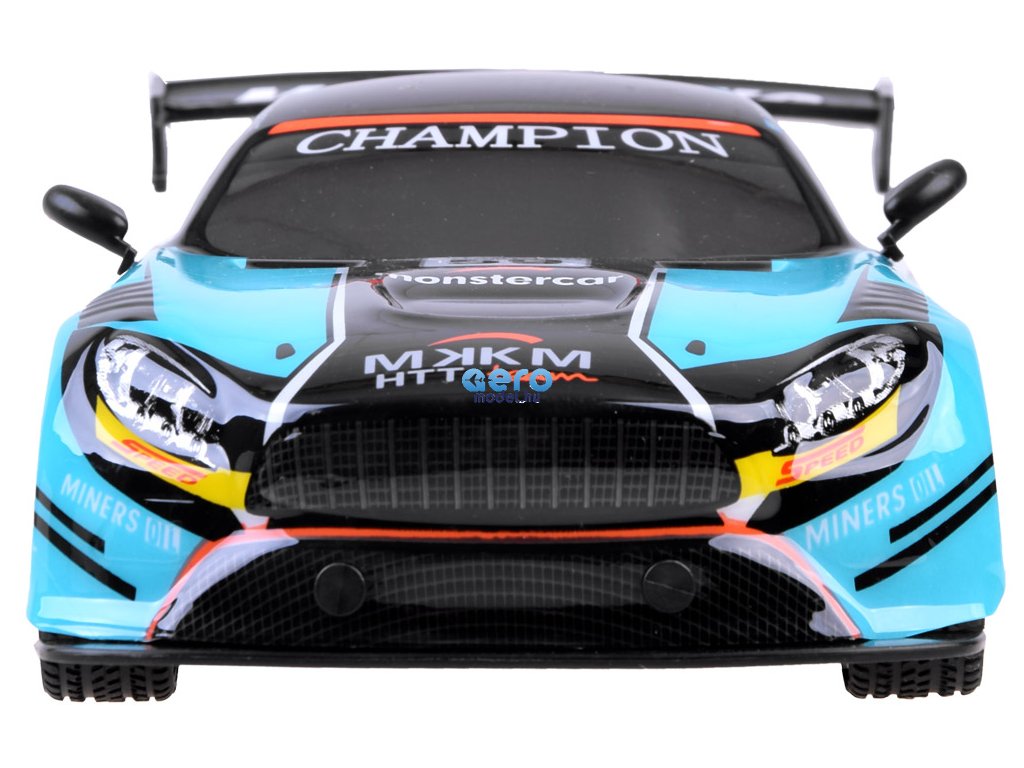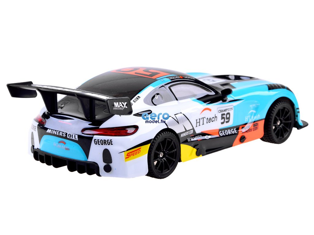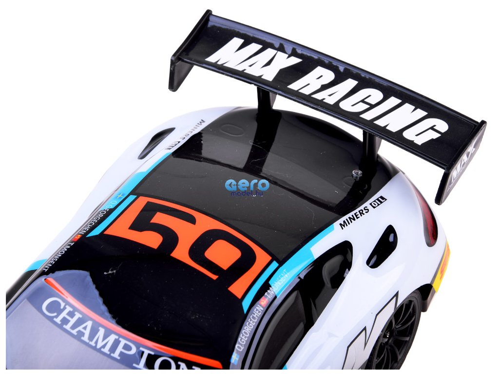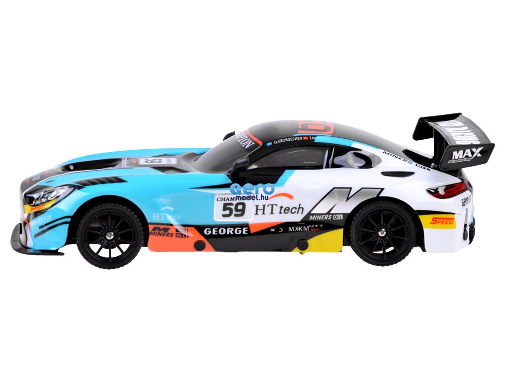 A gumis, széles abroncsok nagyon jól tapadnak a talajhoz, aminek köszönhetően az autó ügyesen behatol a kanyarokban. Az ergonomikus, 2,4 GHz-es távirányítóval vezérelt autó biztosítja a jármű kényelmes irányítását.