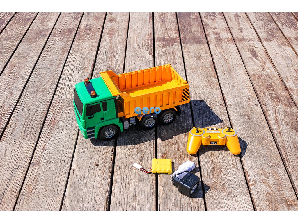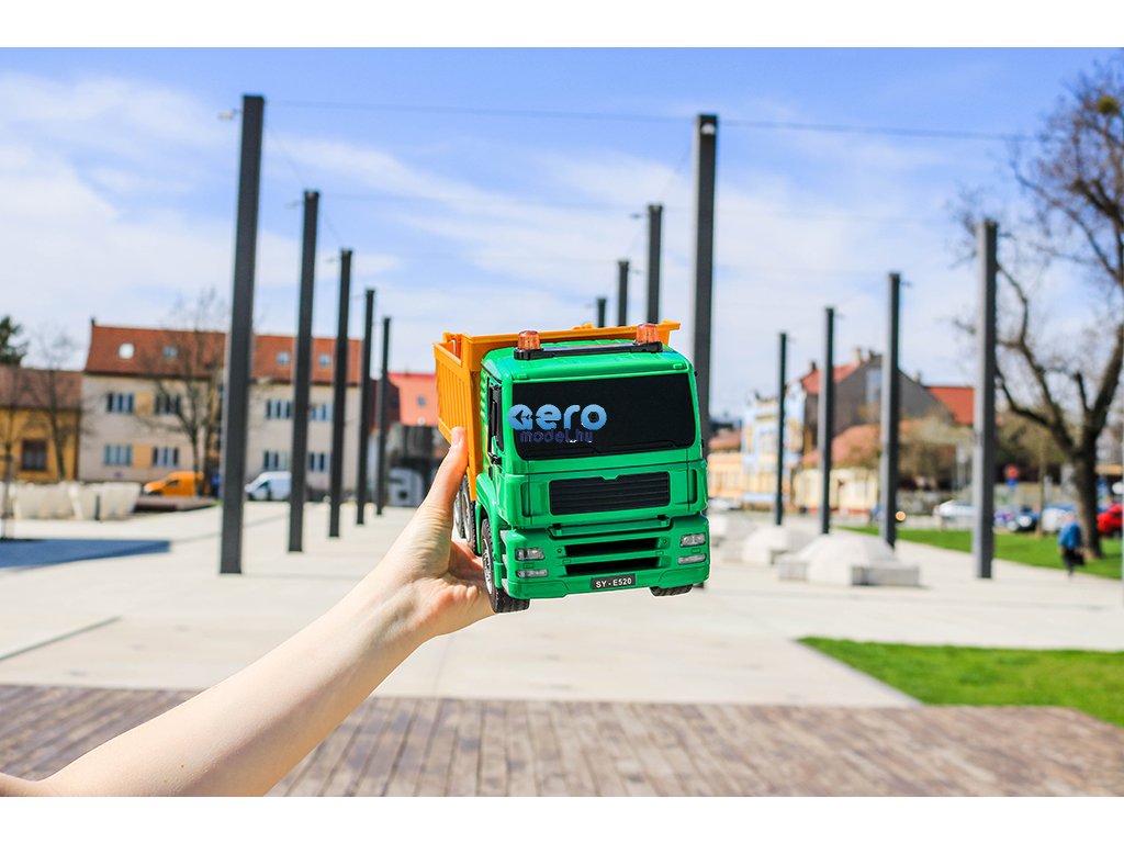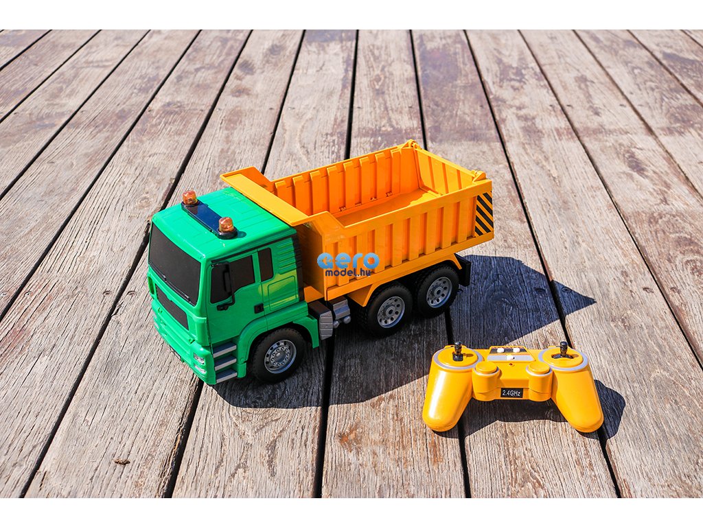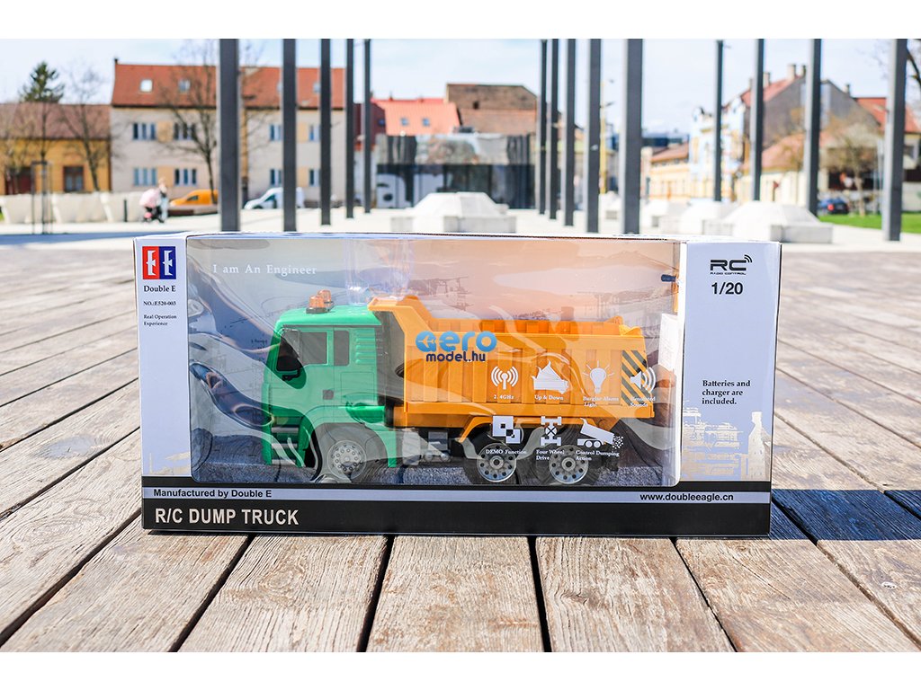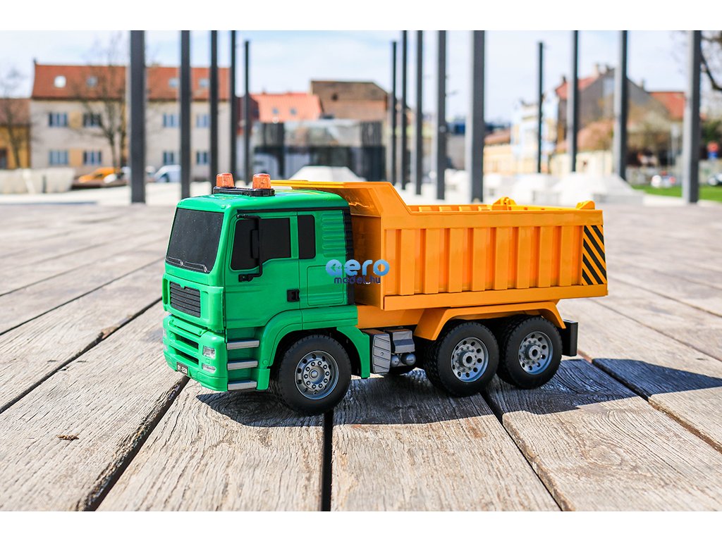 Ez a részletes feldolgozot engedélyezett RC billenőteherautó MAN Truck & Bus Group-től, készült 1: 20-as skálán, 27 MHz-en frekvencián működik , előre, hátra és fordul mint egy igazi autó. A modell 400 mAh-es újratölthető akkumulátorral működik, amely körülbelül 20 percig tart. A távirányító két AA elemre használható.