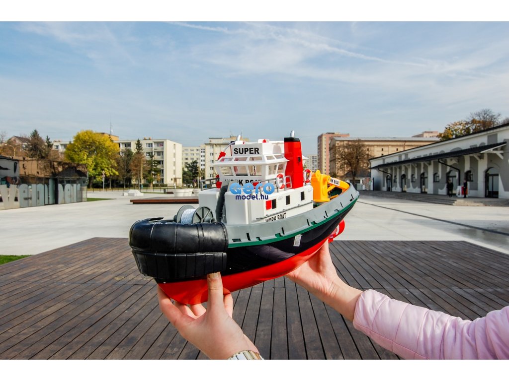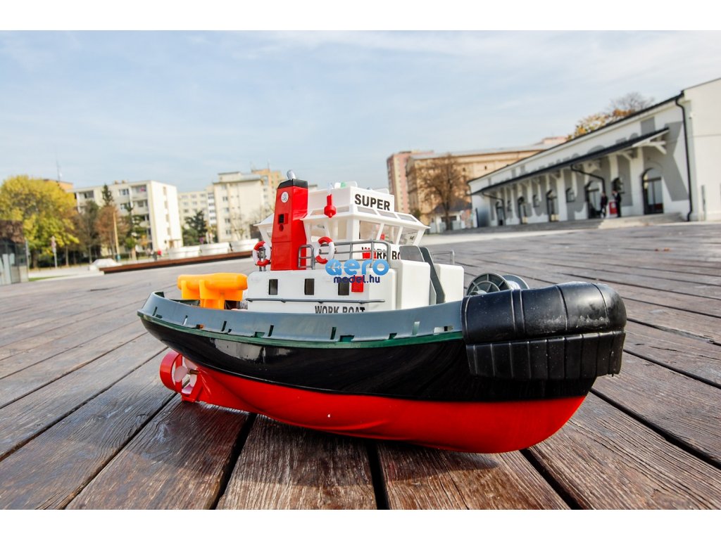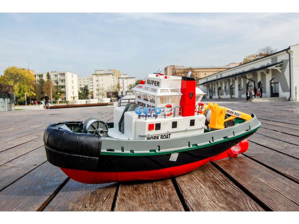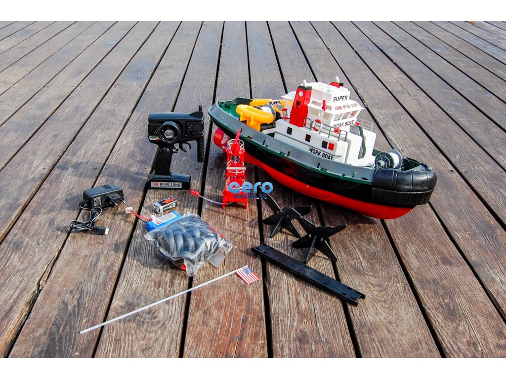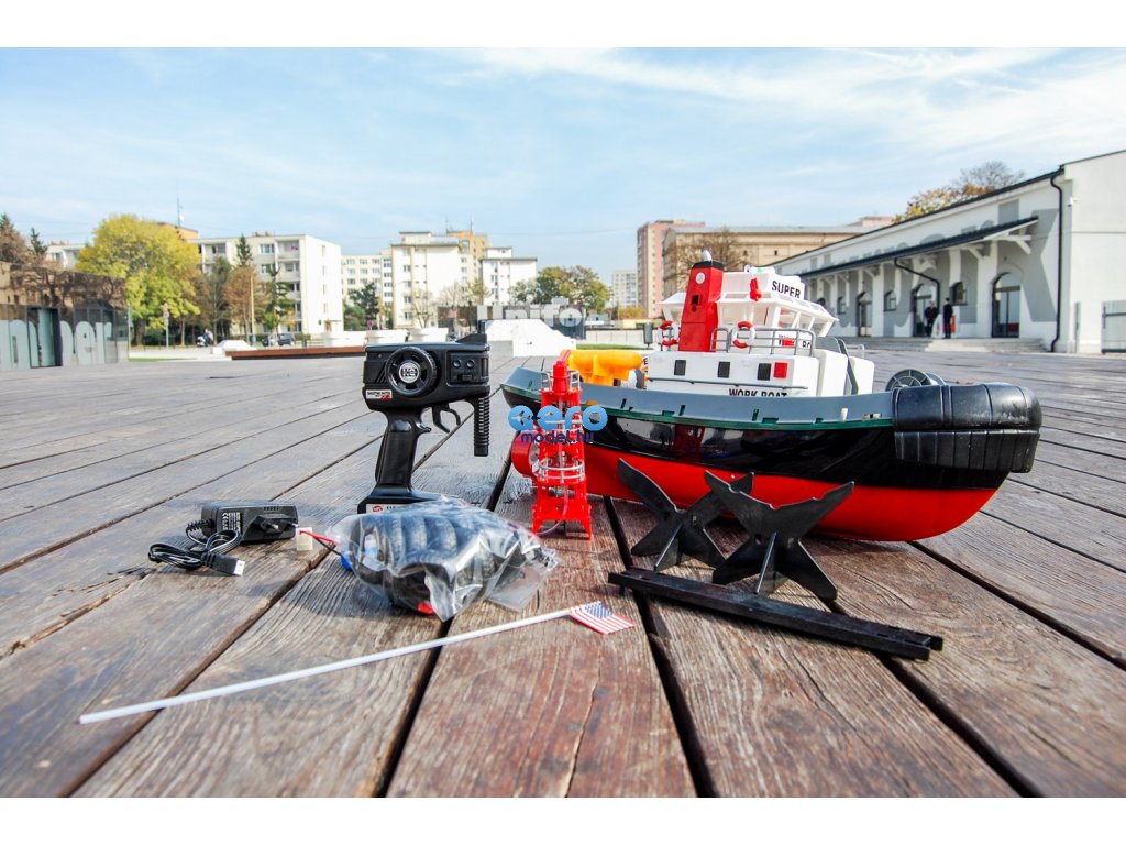 A tűzoltóhajó egy teljesen működőképes RC-modellhajó pisztoly-adóval. A vezetési funkciók mellett a hajó távvezérelt vízpisztollyal is rendelkezik! A csomag tartalmaz egy teljes tűzoltót, 9V-os akkumulátort és 9,6V / 1000 mAh akkumulátort töltővel. A hajó fordulatát egy teljes körű kormánylap vezérli.