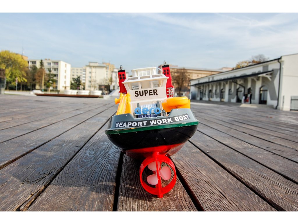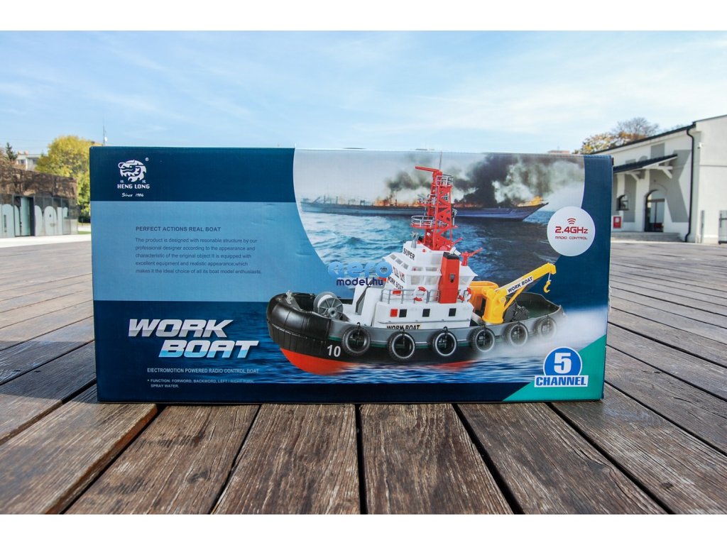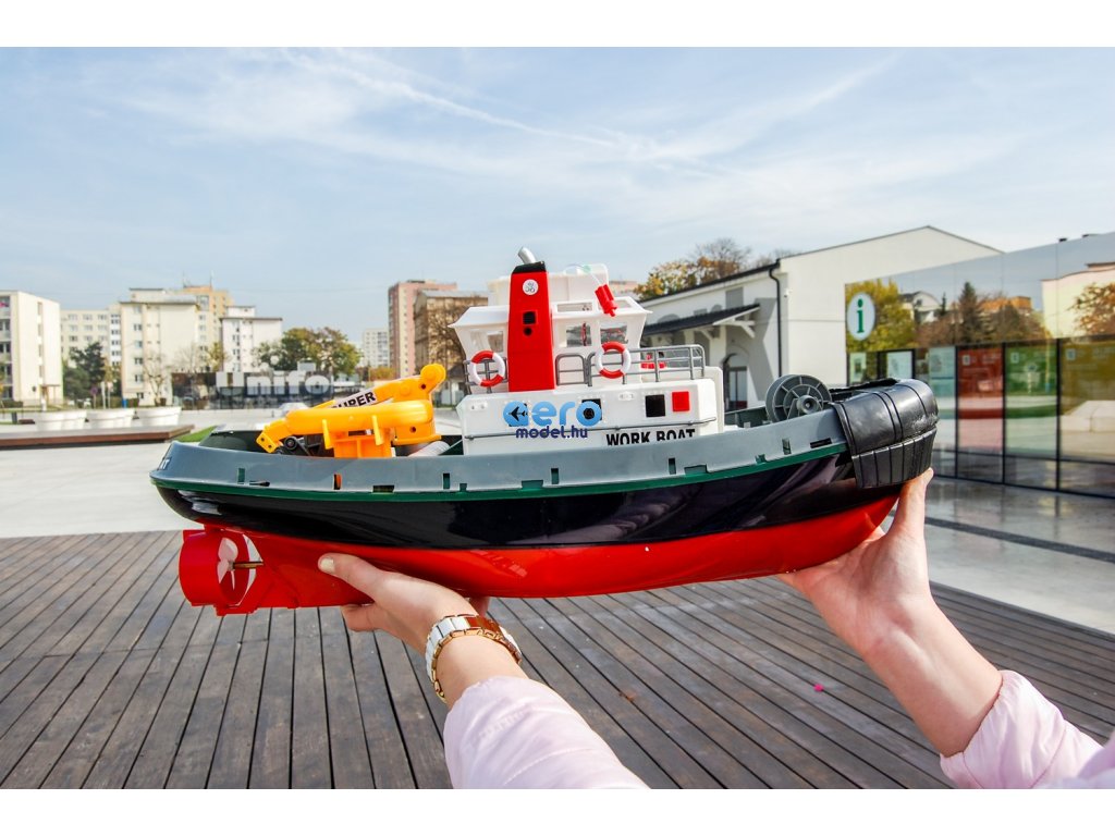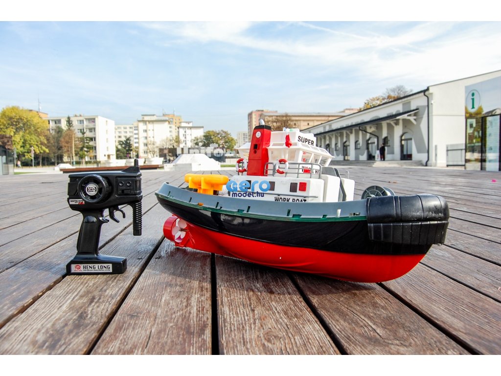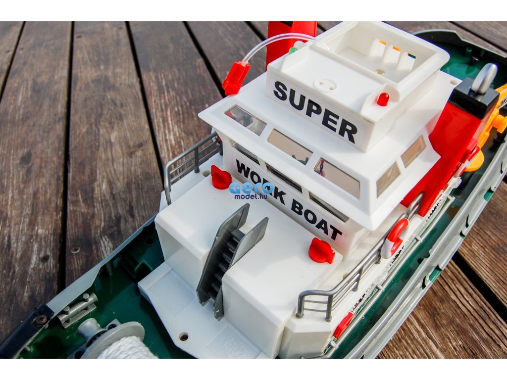 A tűzoltóhajó egy teljesen működőképes RC-modellhajó pisztoly-adóval. A vezetési funkciók mellett a hajó távvezérelt vízpisztollyal is rendelkezik! A csomag tartalmaz egy teljes tűzoltót, 9V-os akkumulátort és 9,6V / 1000 mAh akkumulátort töltővel. A hajó fordulatát egy teljes körű kormánylap vezérli.
