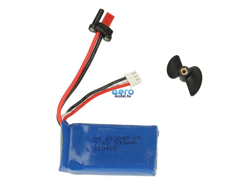 A motorcsónak 7,4 V-os, 700 mAh kapacitású akkumulátorral van felszerelve, motorterheléstől függően körülbelül 10-15 percnyi szórakozást tesz lehetővé. A modell töltése a mellékelt gyorstöltővel történik - a töltési folyamat mindössze 1 órát vesz igénybe.