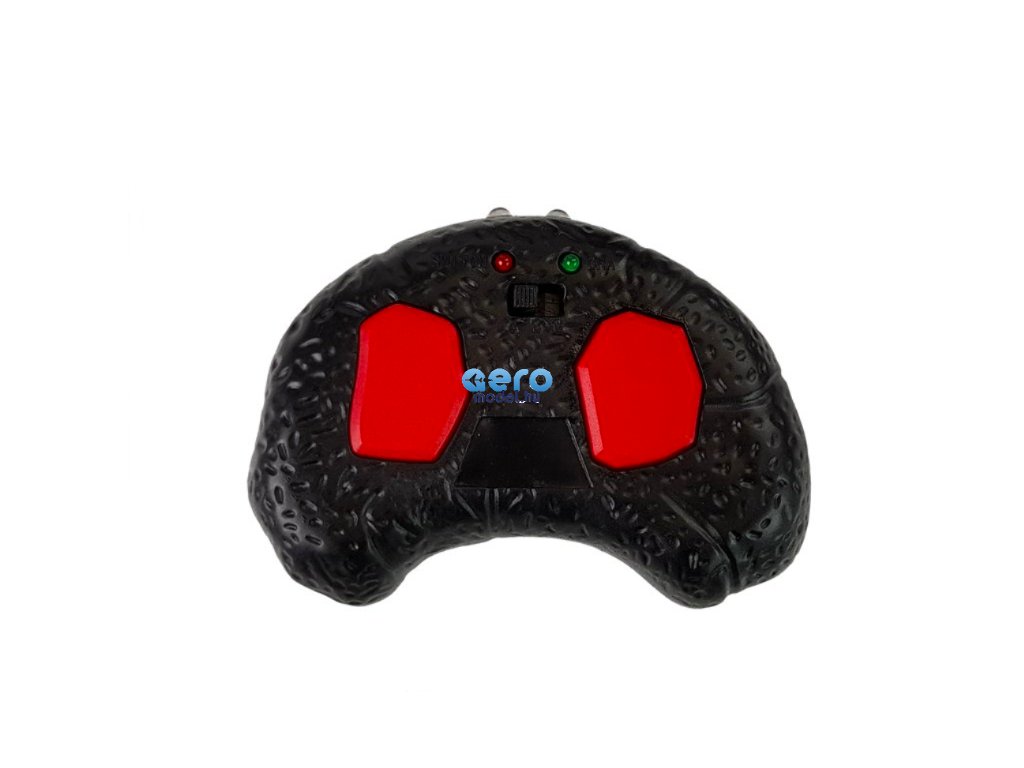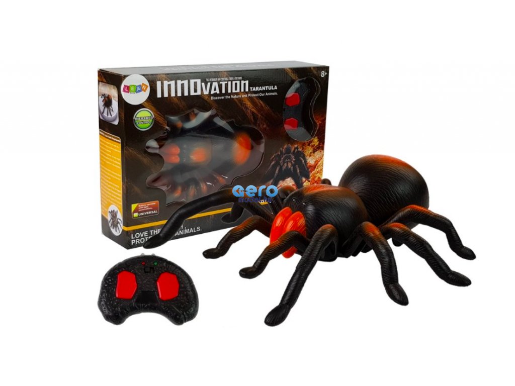 A fekete távirányító két piros gombot tartalmaz. Infravörös vezérlésű, hátul érzékelő van. A bal oldali gomb hatására a tarantula előrelép. A jobb oldalon lévő gomb a pók jobbra fordulását okozza.
