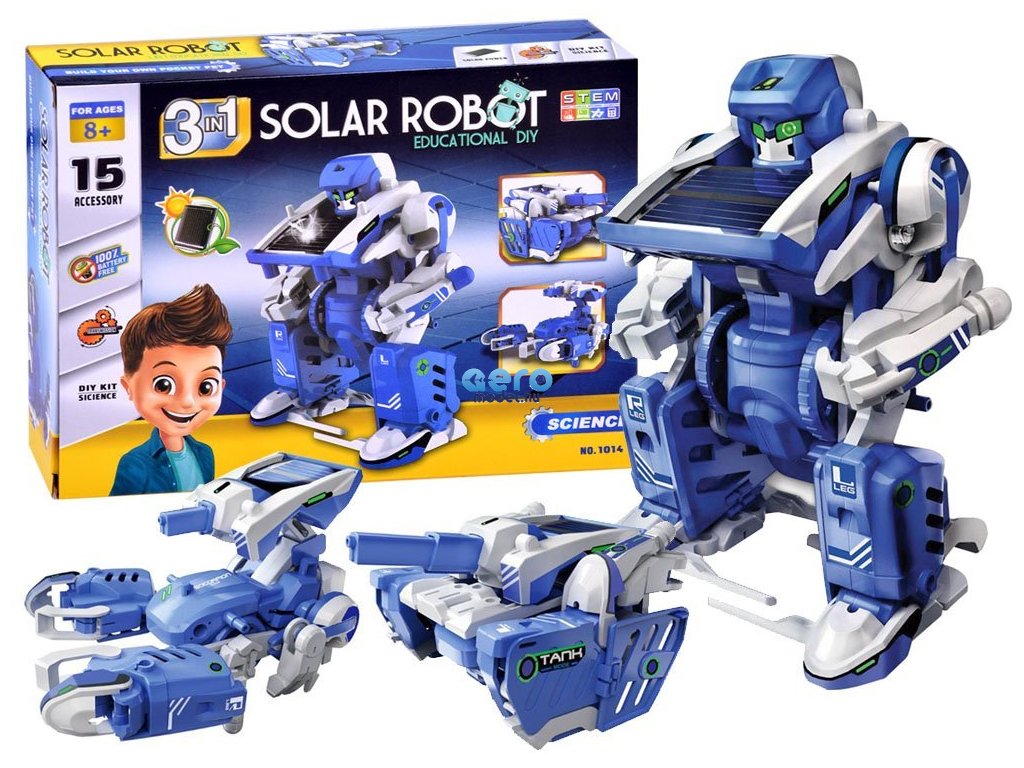A szolár robot 3 különböző robot, modell, skorpió, tartály modellre alakítható át. A játék egyedi kiegészítőket tartalmaz (a szállítás része) és olyan részeket, amelyek figyelembe veszik a robot mozgásának fedését. Az alternatív energiaforrások ilyen fontos szerepet játszanak, nincs idő arra, hogy most elkezdje elsajátítani az alapvető technológiákat a gyermekek számára. Szerencsére ezt a terméket a nap táplálja, ezért nem igényel elemeket. A robot a napfény szintjén mozog (erős napfény vagy más fényforrás), és lehetővé teszi a gyermekek számára, hogy létrehozzák és felhasználják végtelen fantáziájukat.