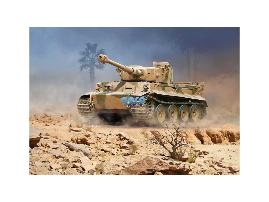 A legendás német Tiger IV tank készlete eredeti konfigurációjában. Fröccsöntött szalagok egyedi alkatrészekből. Mobil lövegtorony. Fogaskerekek az első Tiger verzióból. Matricakészlet az Afrika Korps két változatához.