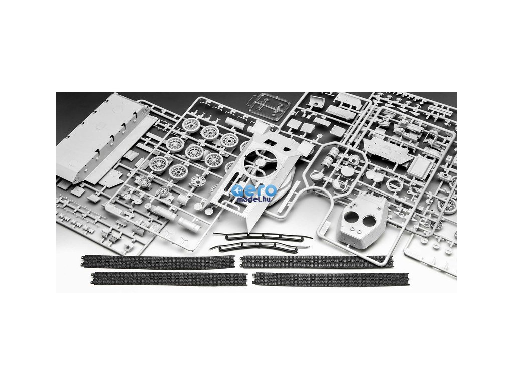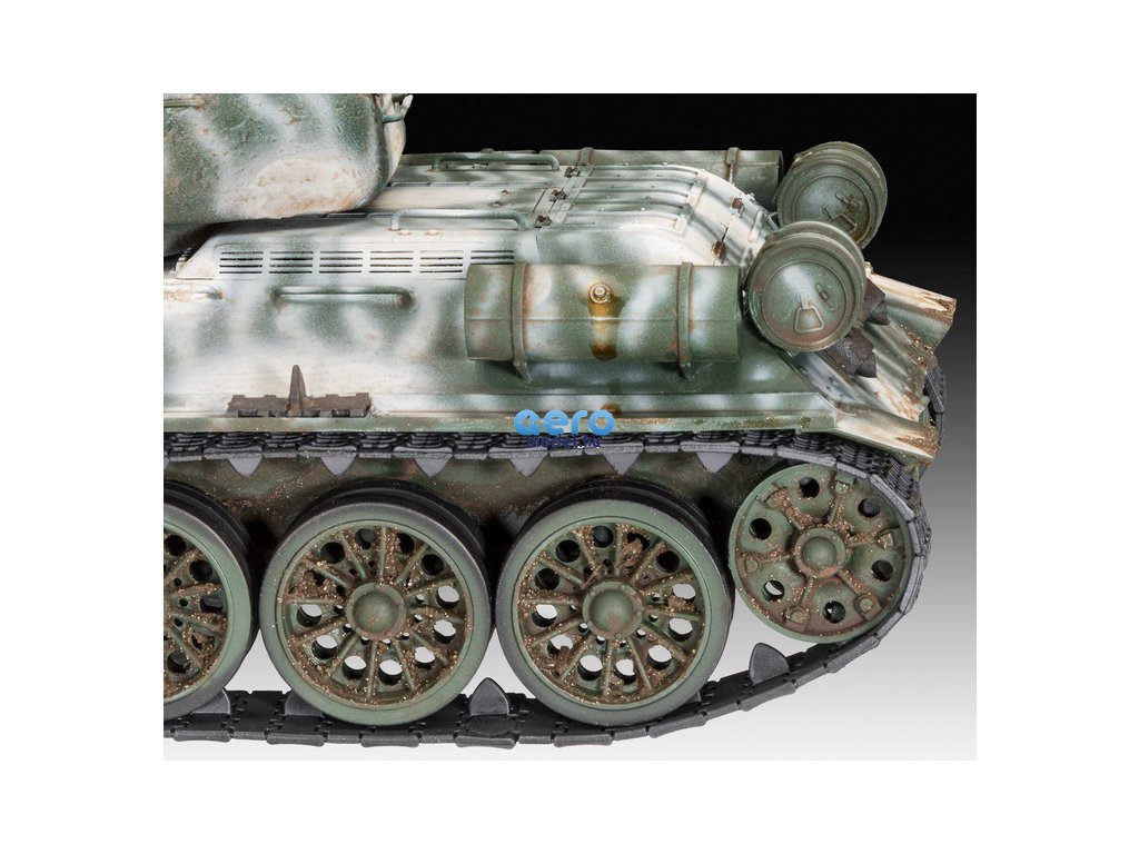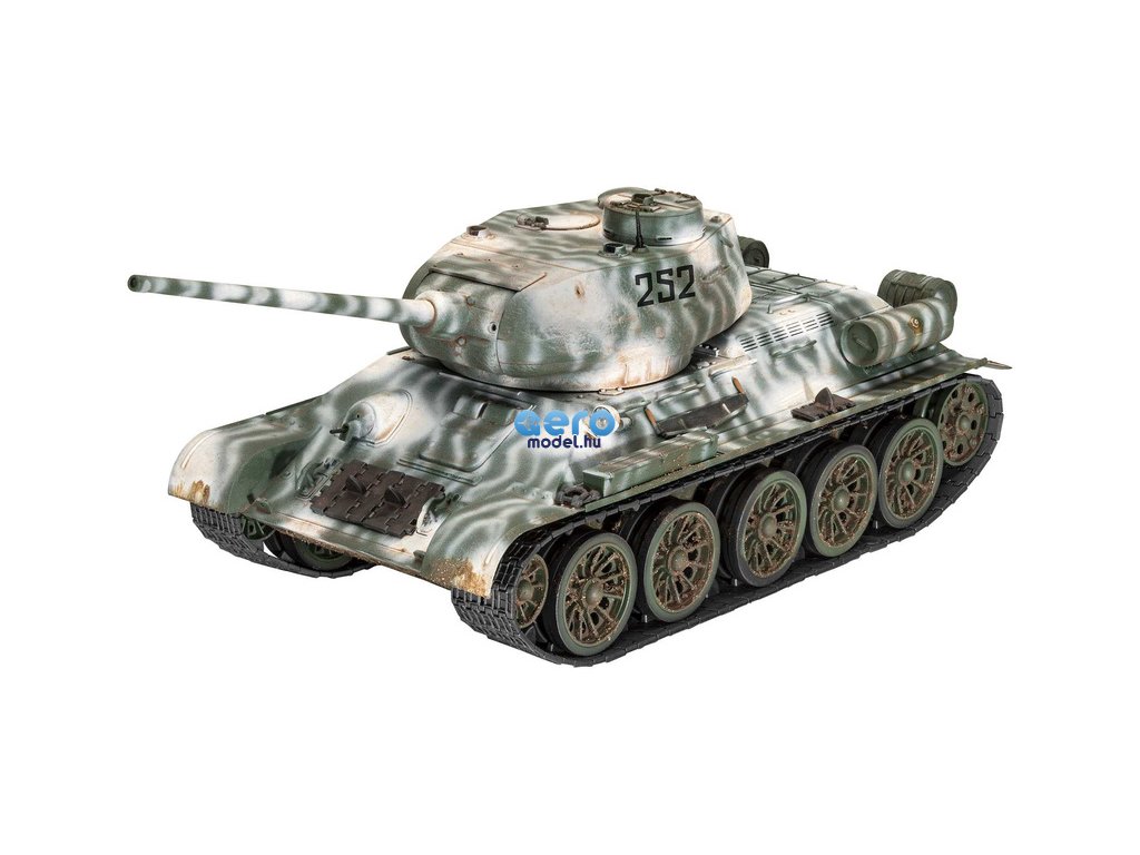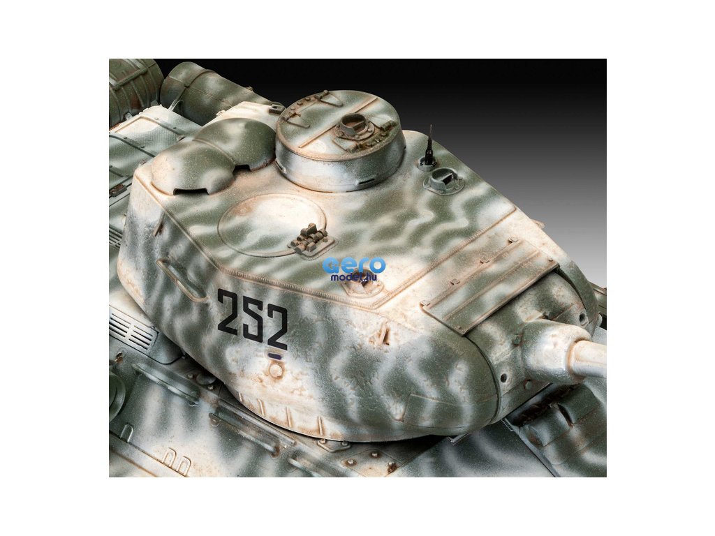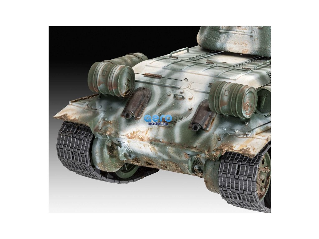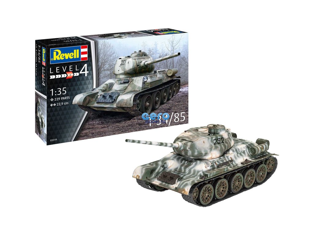 Revell 03319 műanyag modell - T34-85 tank 1:35 méretarányban ragasztáshoz. A készlet 229 darabot tartalmaz, hossza 229 mm, nehézségi fok 4.