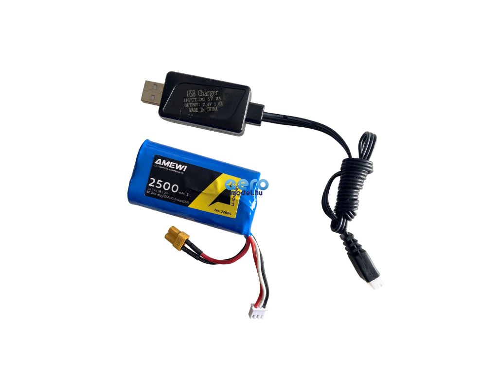 Akkumulátor: Li-Ion 2S 7,4 V 2500 mAh 5C, XT30, 70 × 36 × 20 mm, 98 g