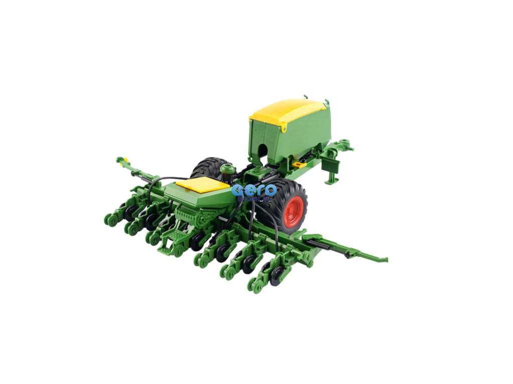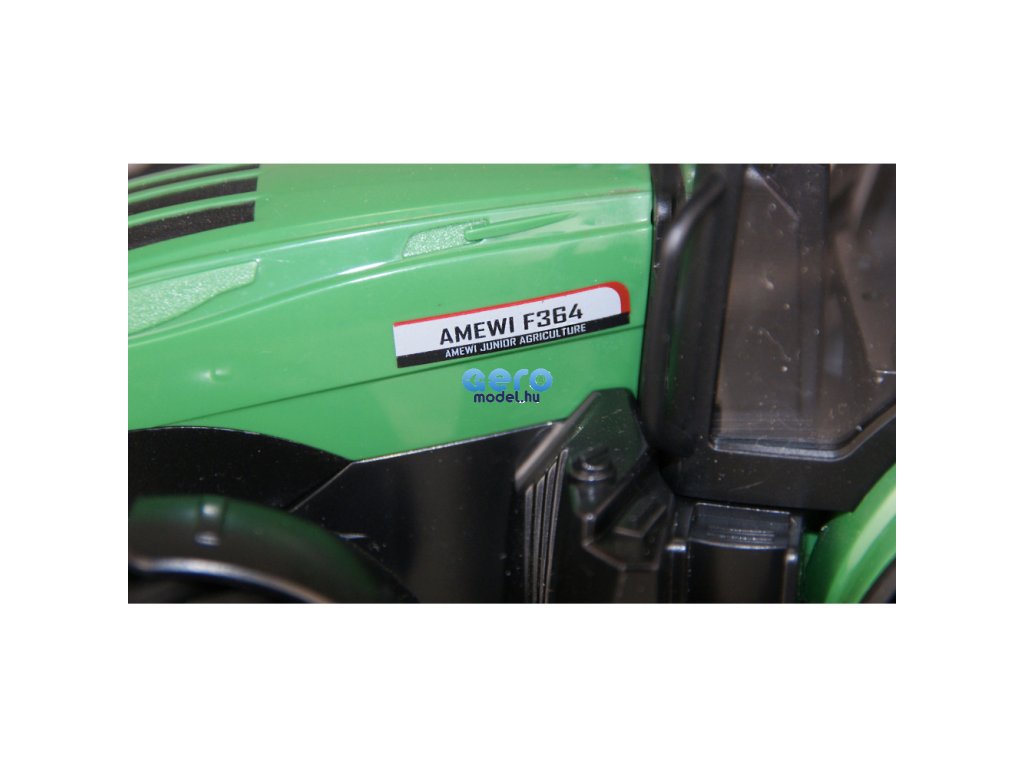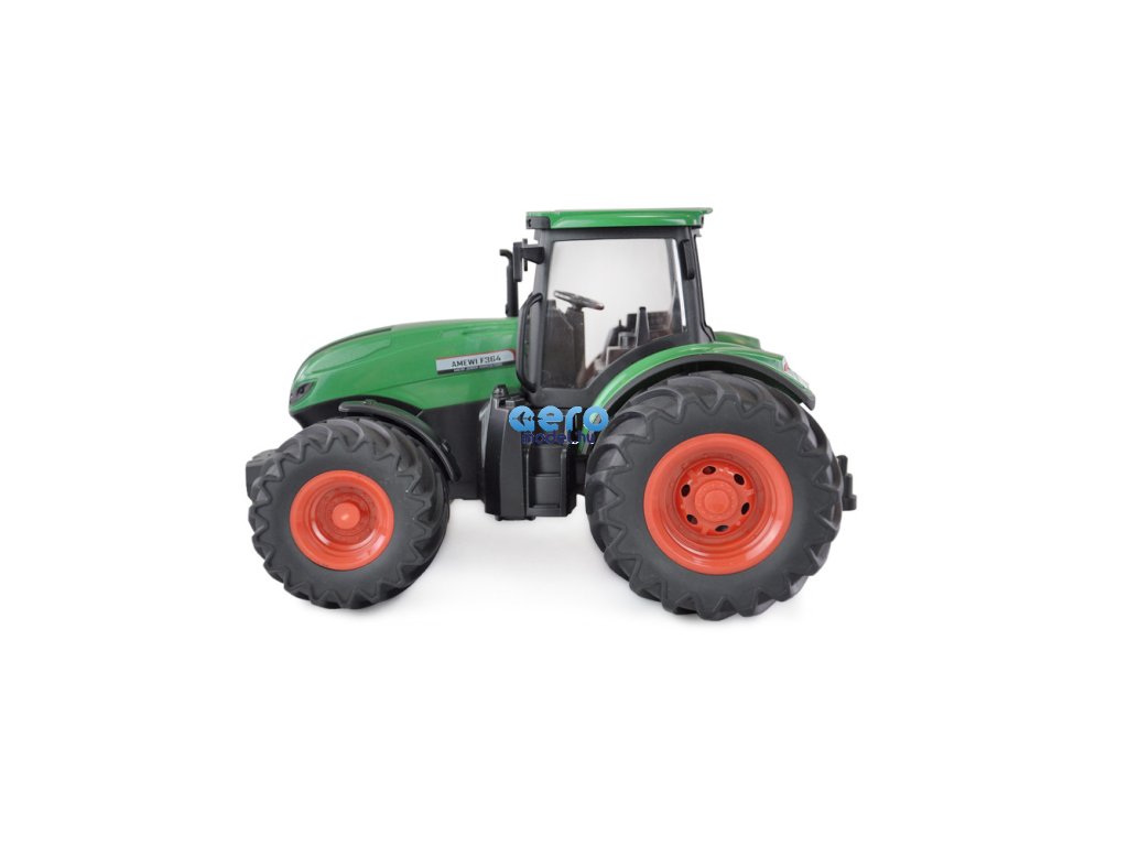Egy nagyon szépen kidolgozott RC traktor modell távirányítós vetőkocsival. A modell dizájnja igazán gyönyörű, a modell előnyei közé tartoznak a nagy, széles kerekek, az első lámpák és a motor hangja. További előnye a lassú vezetés, amely erővé alakul, ahogy egy traktornak lennie kell! A tisztességes akkumulátor-üzemidő akár 35 perces vezetést is lehetővé tesz. A traktor akkumulátora cserélhető. A modellvezérlőnek nincs antennája vagy karja, ami azért jó, mert a gyerekeknek nincs mit eltörniük. A traktor világít és valósághű hangokat ad ki, előre, hátra, balra, jobbra halad. Nagy hátsó kerekek hajtják, amelyek mély mintázatú puha gumiabroncsokkal vannak felszerelve.