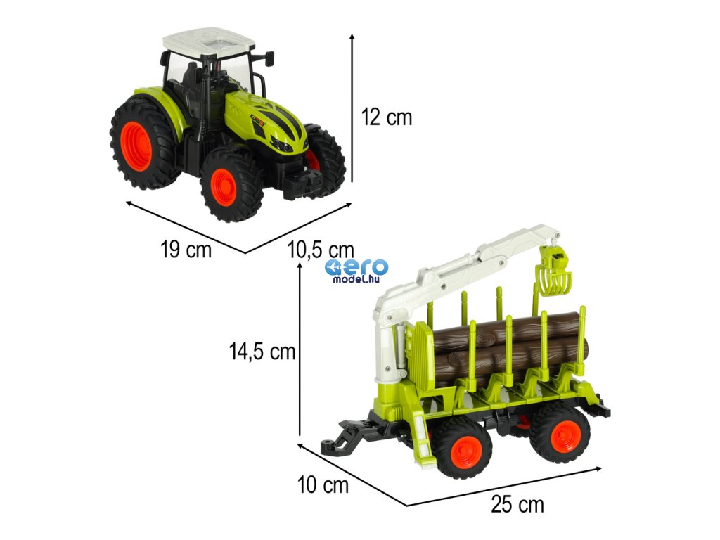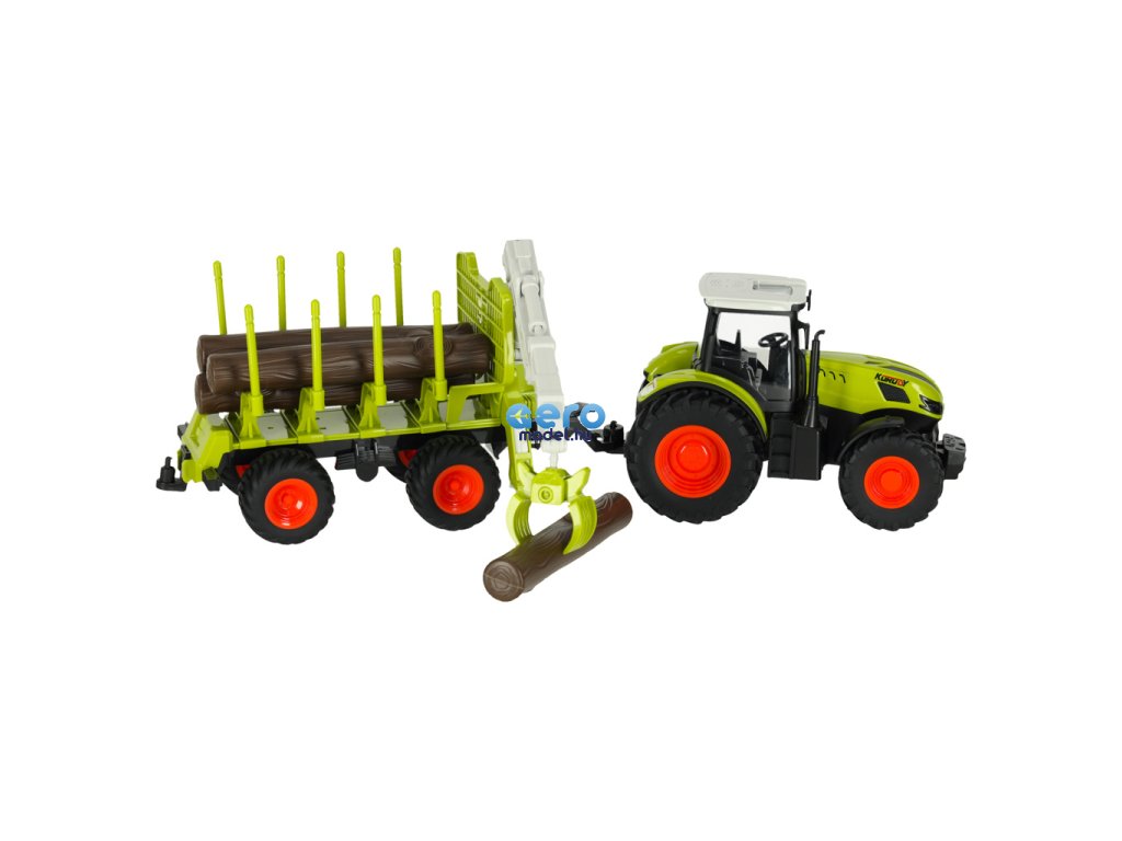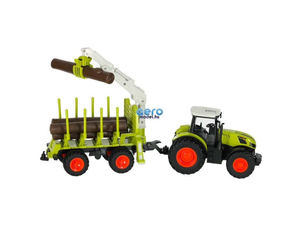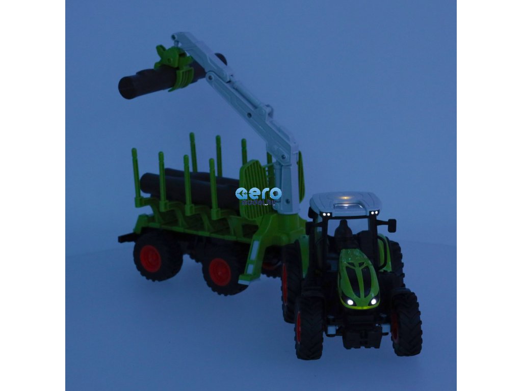 Korody: RC traktor 2.4 GHz fa szállító kocsival, világítással, hanggal 1:24