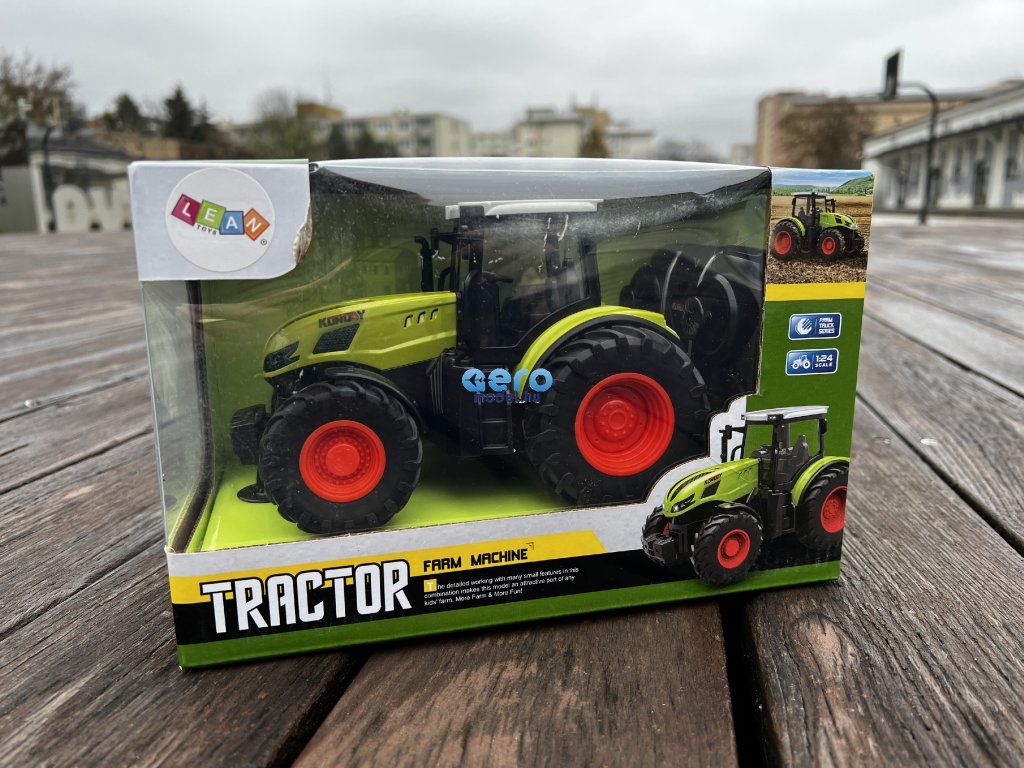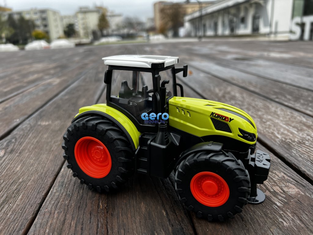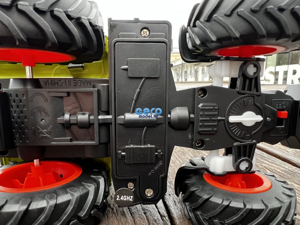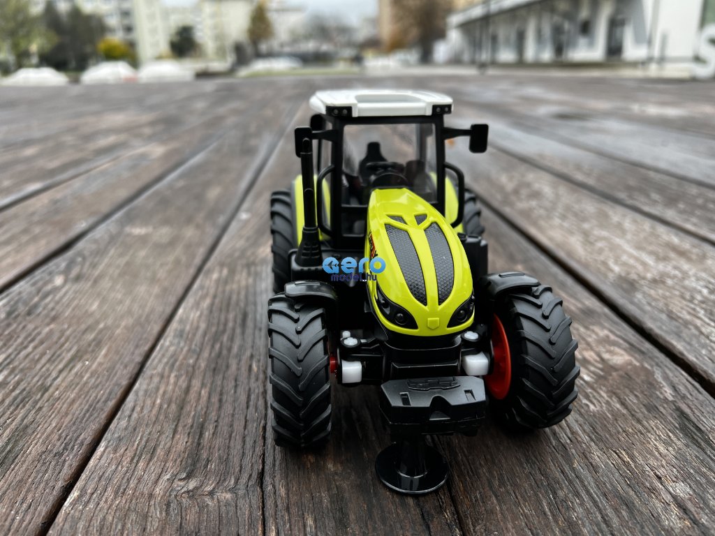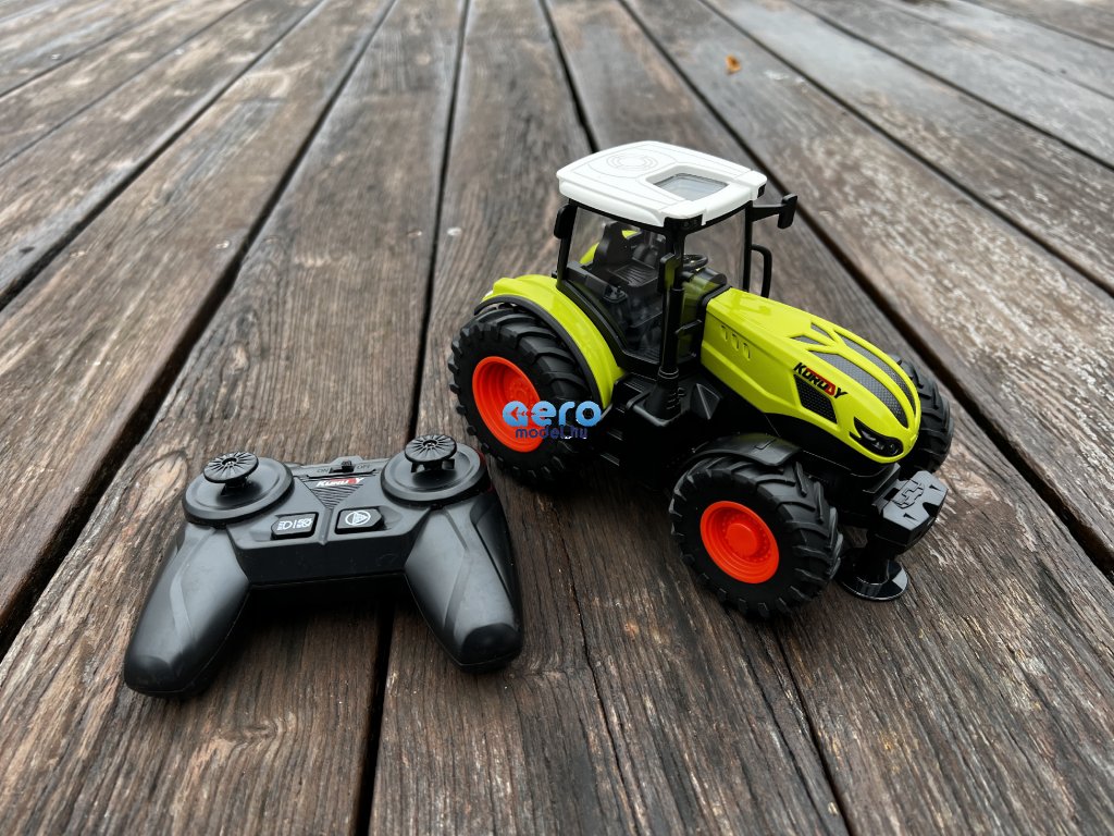 A teljes vezetőfülke ugyanúgy van leképezve, mint a valódi megfelelőben. A traktor valósághű megjelenésű, extra nagy abroncsok és ez is gumiban. Felépítése éles részektől és végektől mentes. Az egész karosszéria fémből készült, ami garantálja a tartósságot. A zöld és a fehér tető tökéletesen illeszkedik, ami vonzza a tekintetet. Az első lámpák menet közben működnek, megvilágítják az utat. A távirányító kezelése nagyon egyszerű. Ezen kívül előre, hátra és oldalra is kormányozható. Működési frekvenciája 2,4 Ghz. Formájának köszönhetően a távirányító kényelmesen illeszkedik a kézbe, és intuitívan használható. Távirányítós interaktív traktor, 1:24 méretarányban.
